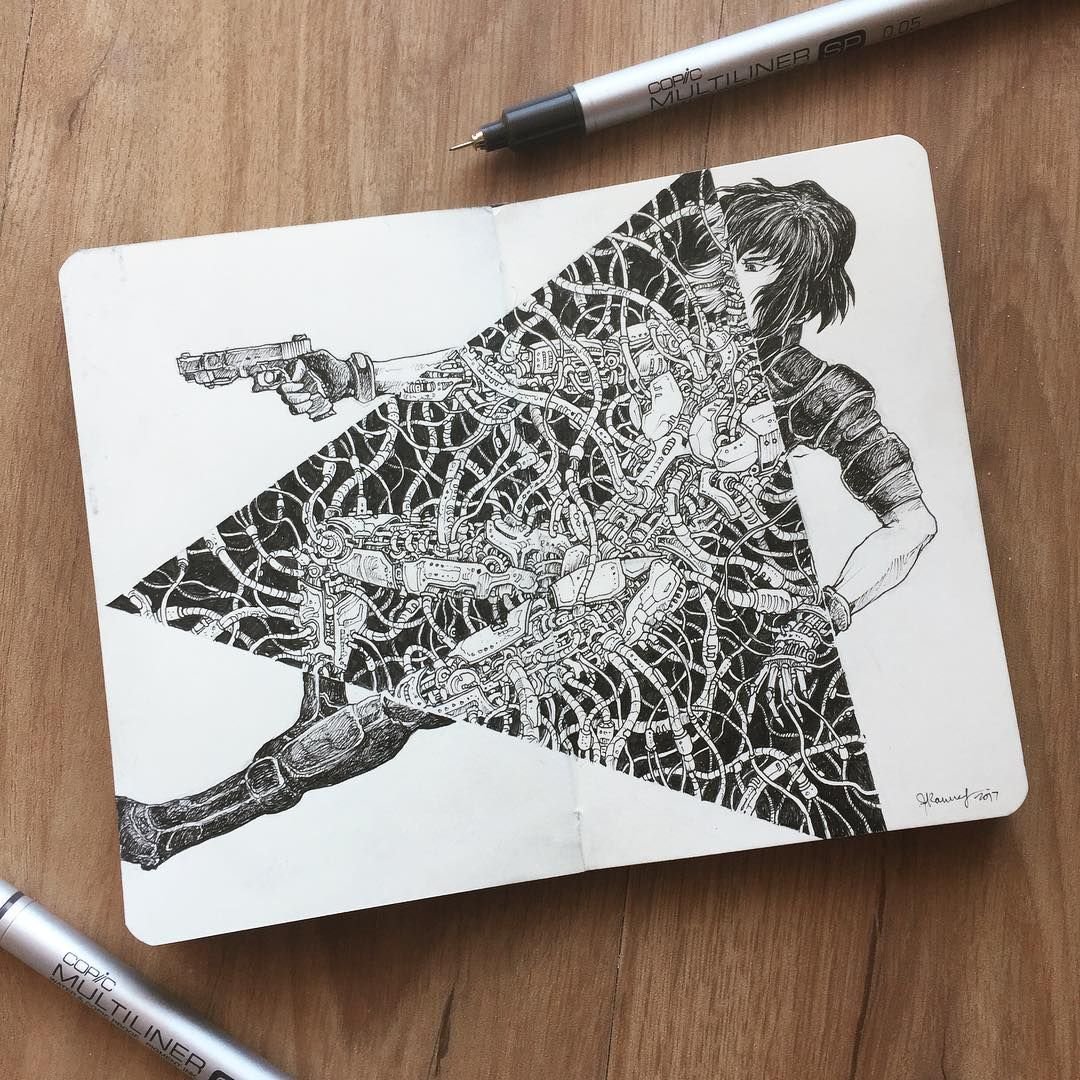 ![Рисунки в скетчбуке черной ручкой легкие]()