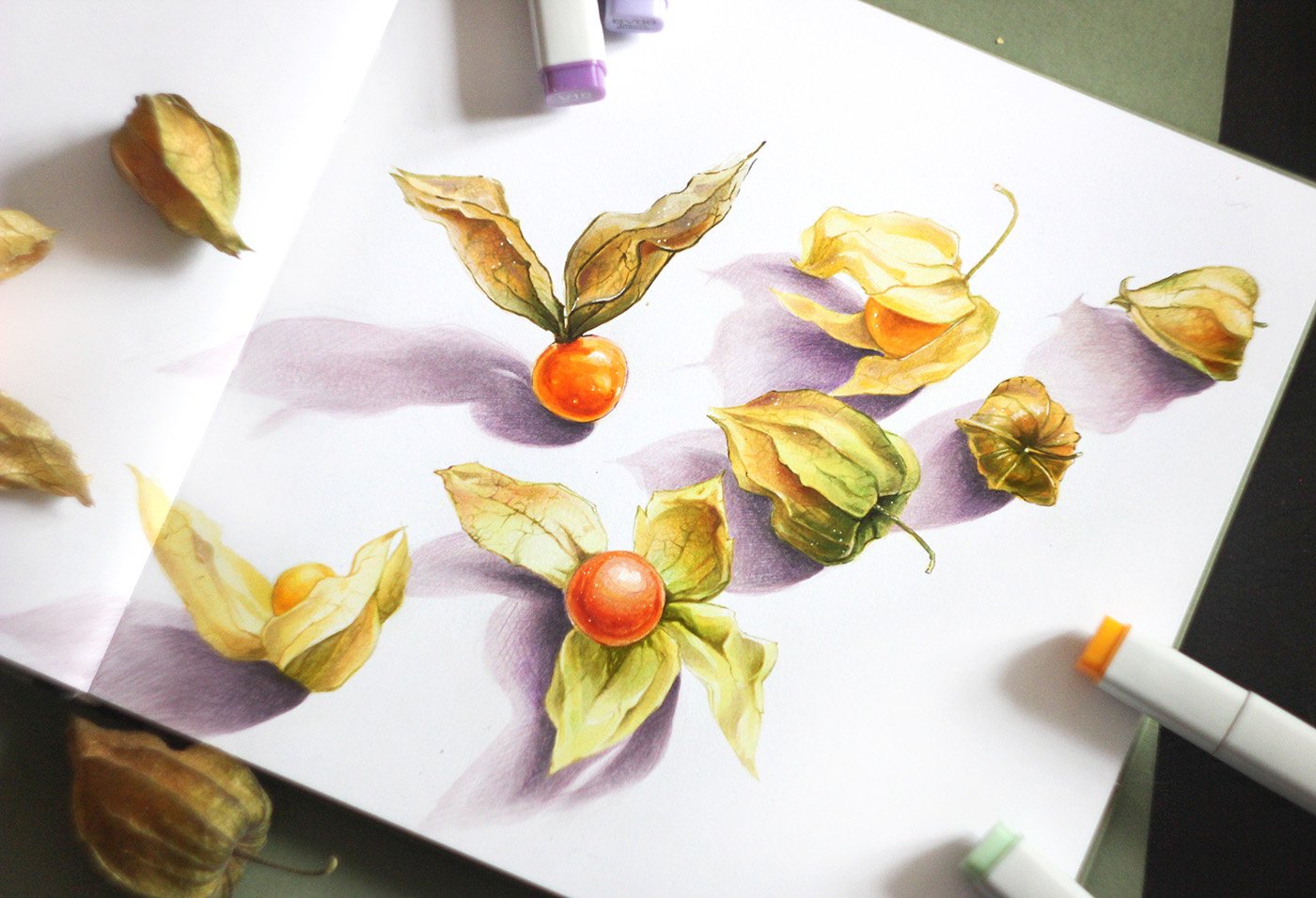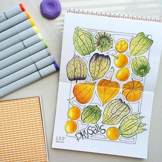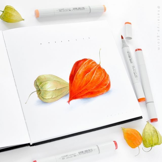 ![Скетчинг маркерами физалис]()