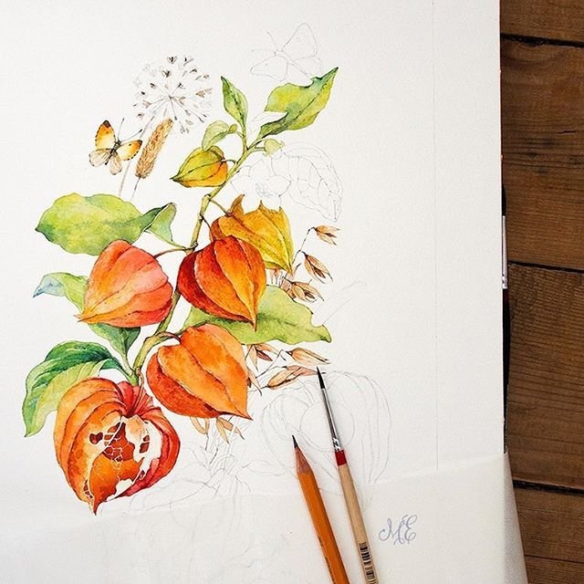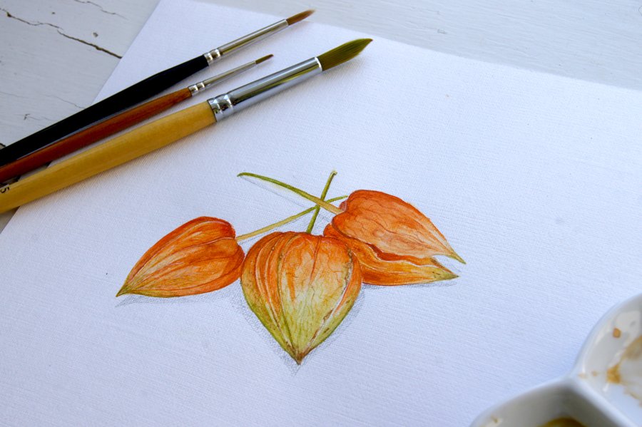 Физалис акварелью мастер класс