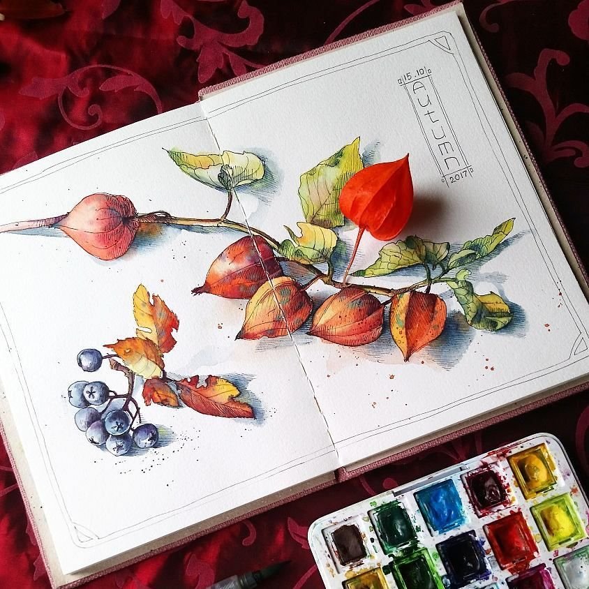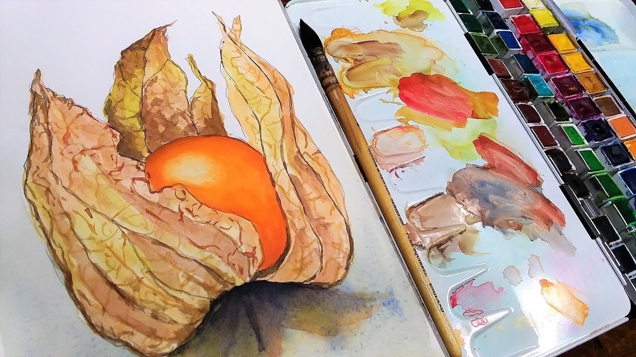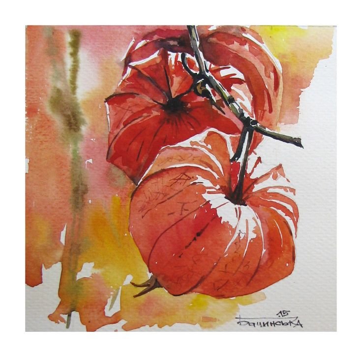 ![Физалис акварелью мастер класс]()