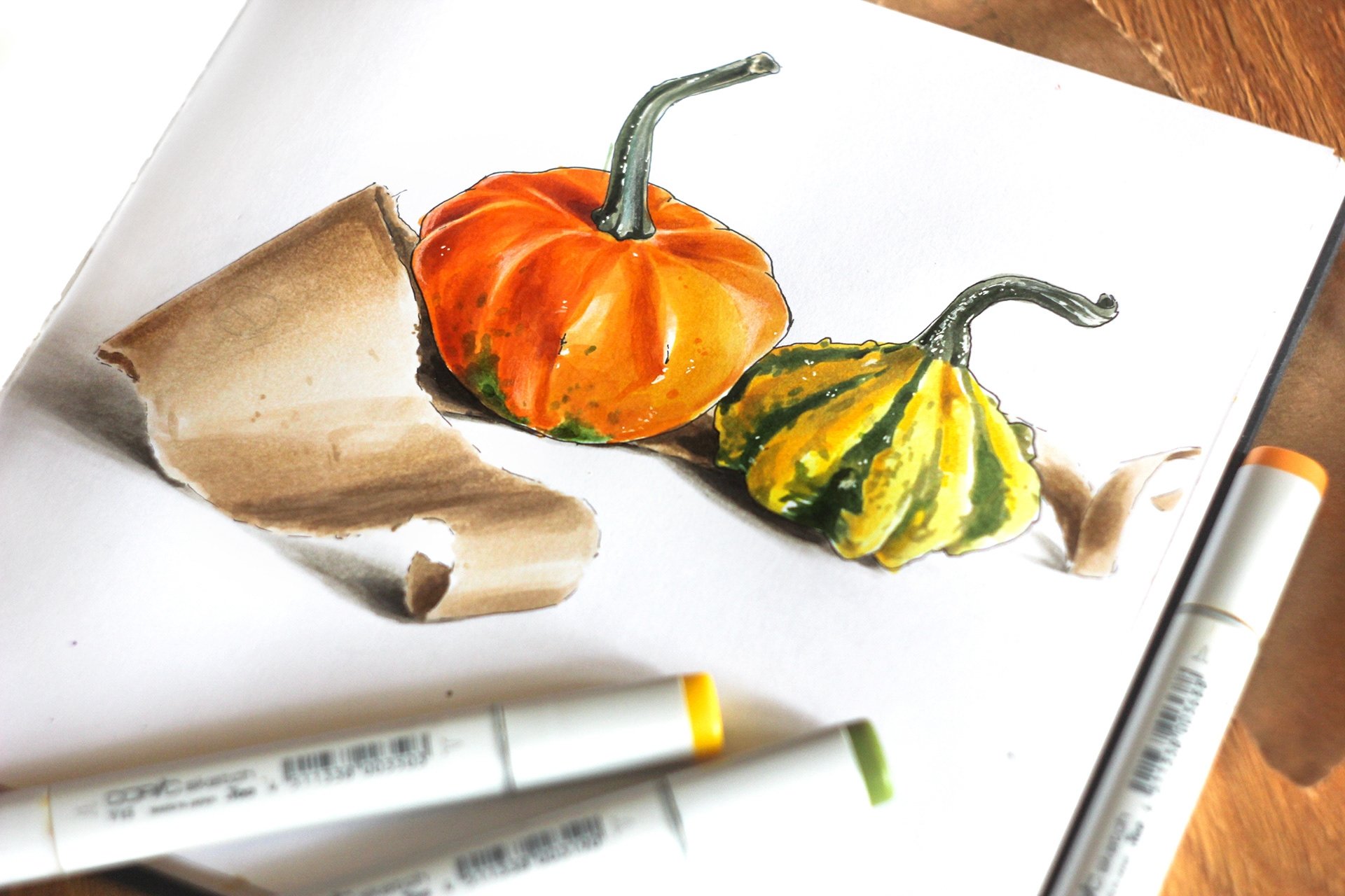 ![Тыква скетчинг маркерами]()