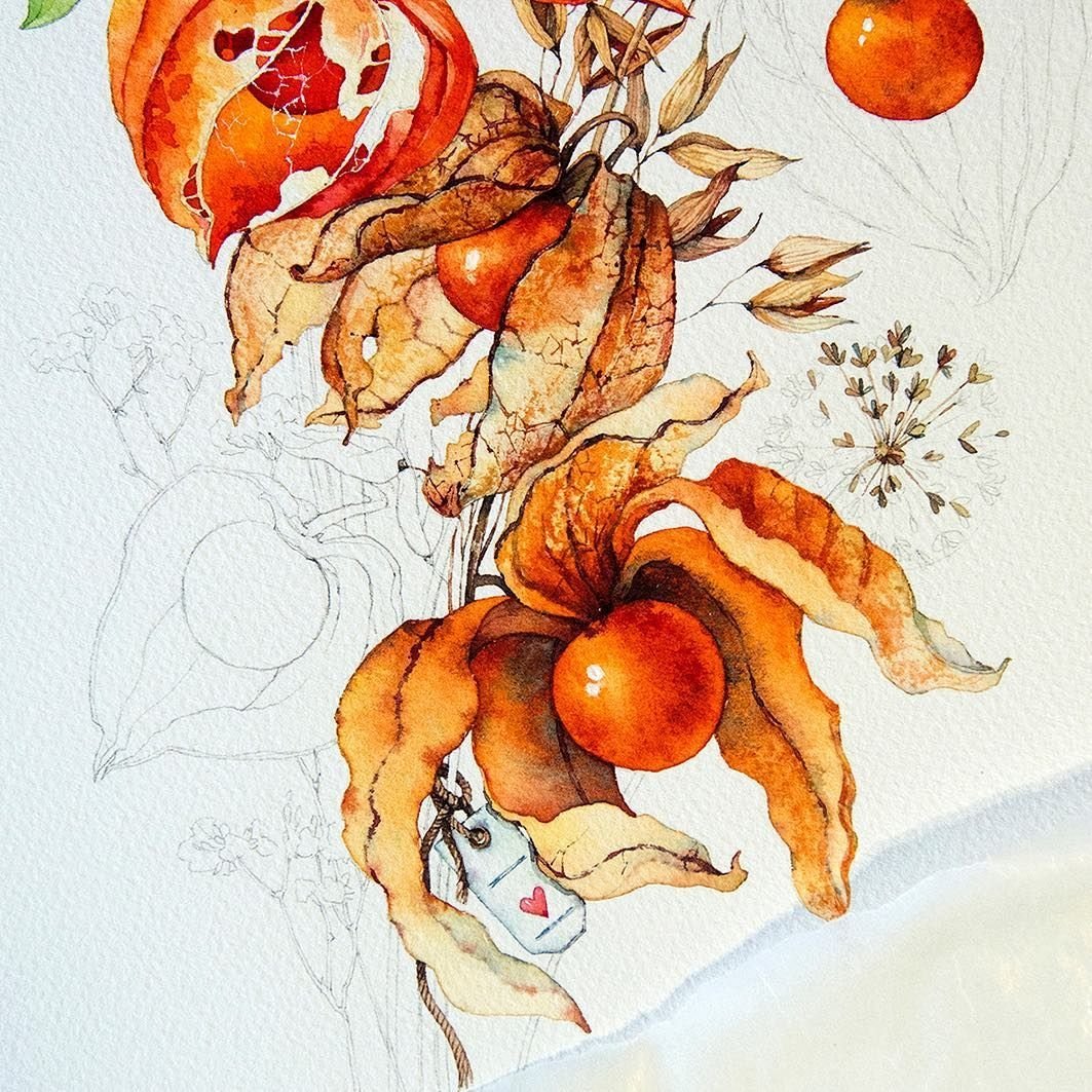 Ботаническая живопись акварелью физалис