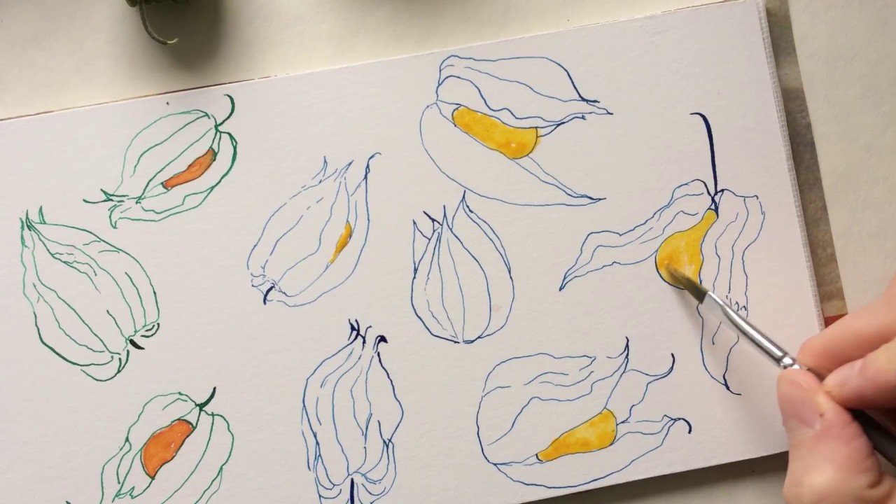 ![Физалис акварелью скетч]()