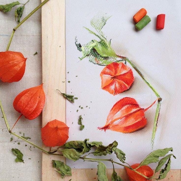 ![Физалис пастель акварель]()