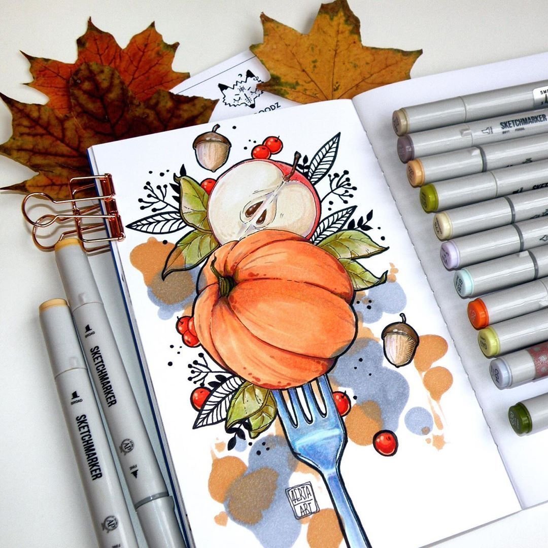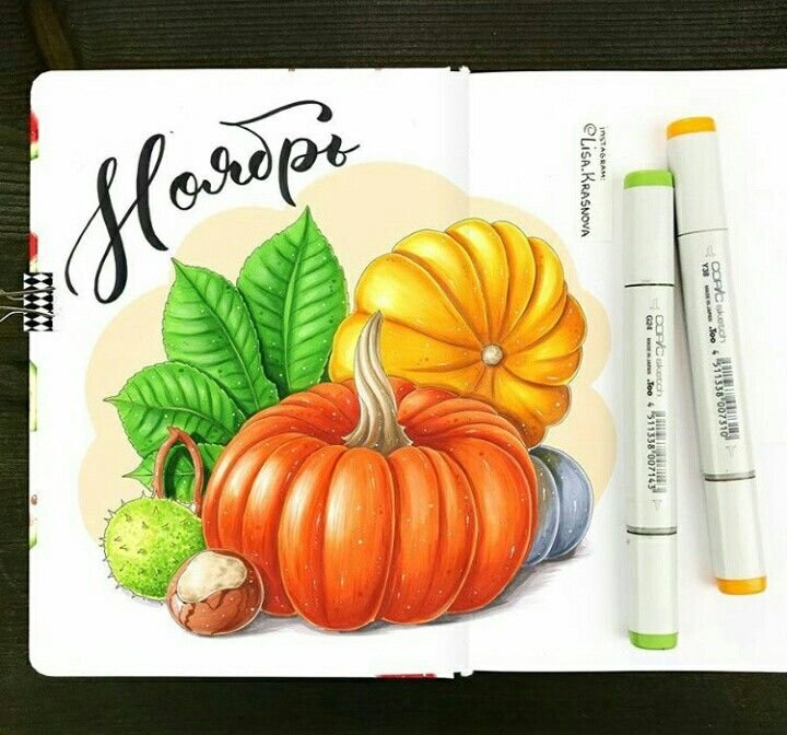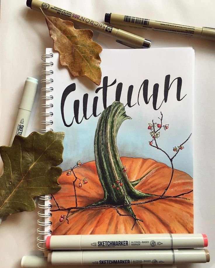 ![Тыква скетчинг маркерами]()