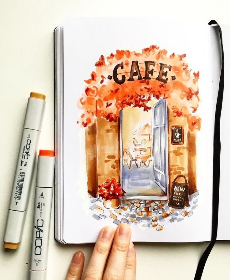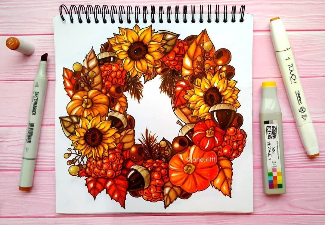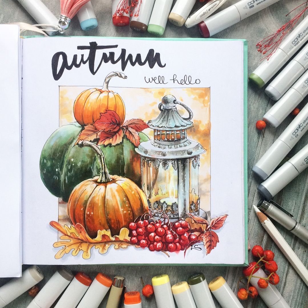 ![Скетчинг маркерами осень]()