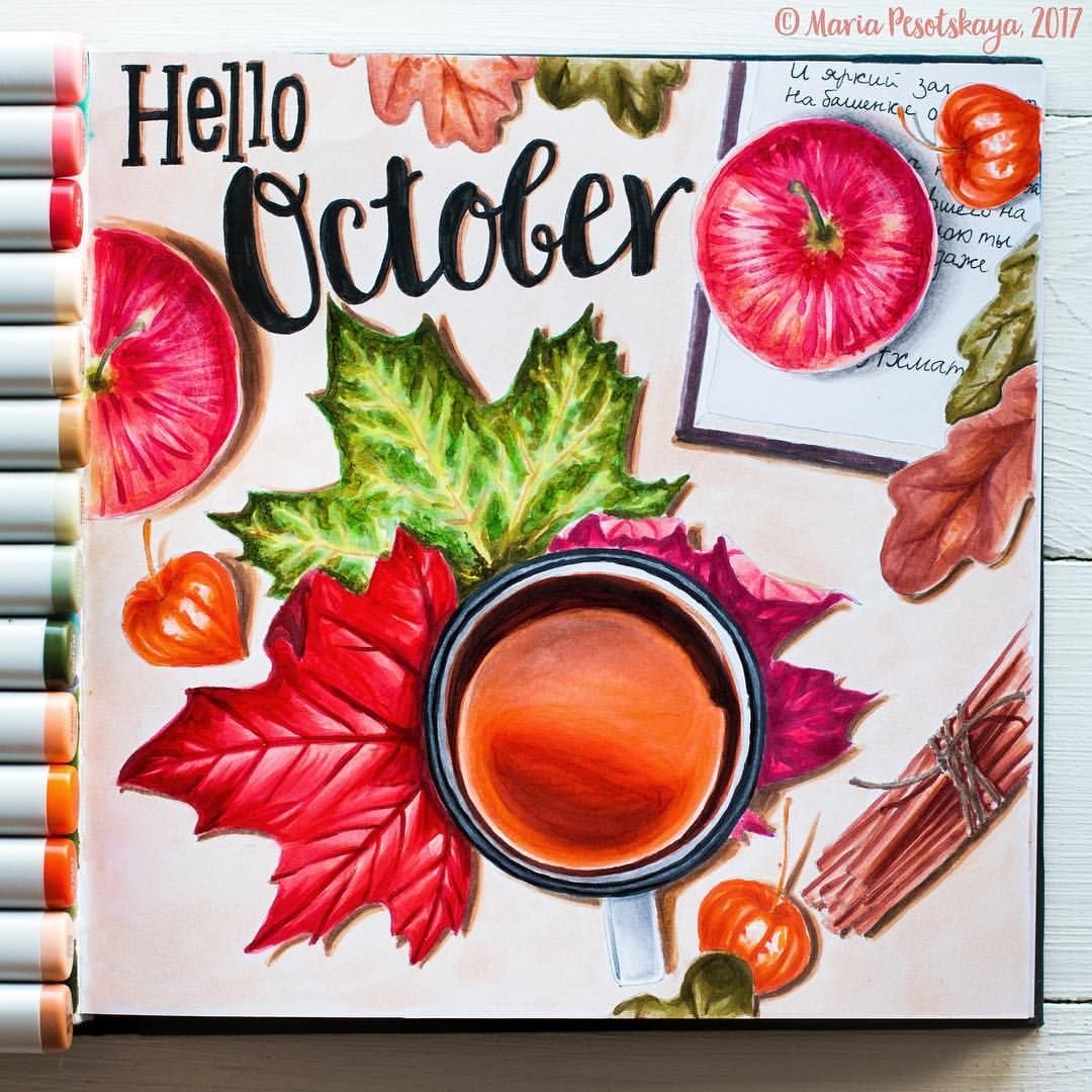 ![Осенние иллюстрации маркерами]()