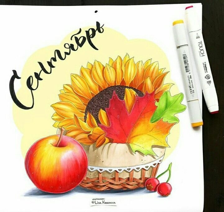 ![Рисование маркерами на тему осень]()