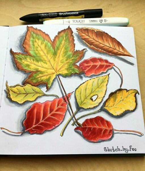 ![Скетчинг маркерами осенние листья]()