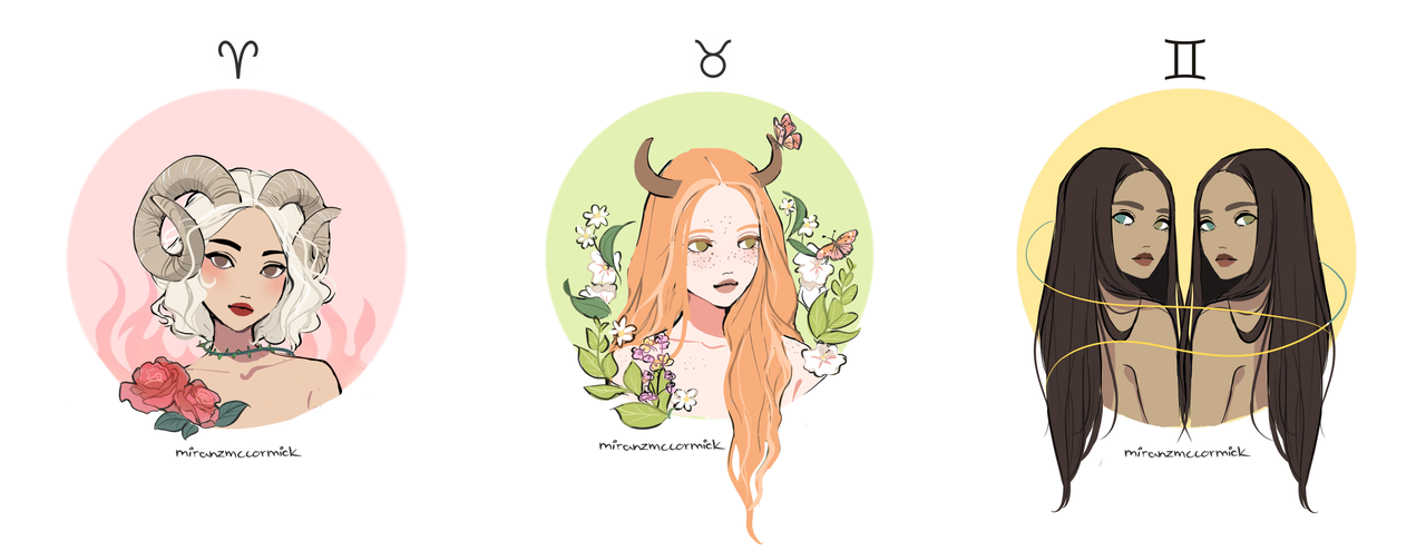 ![Нарисованные девушки знаки зодиака]()