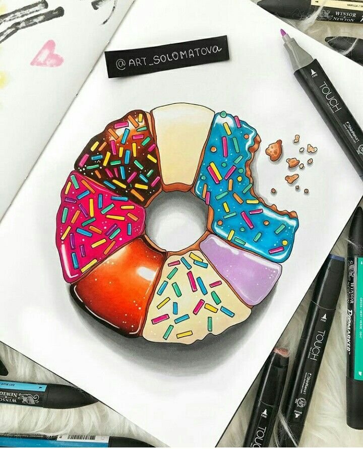 ![Скетчинг маркерами пончик]()
