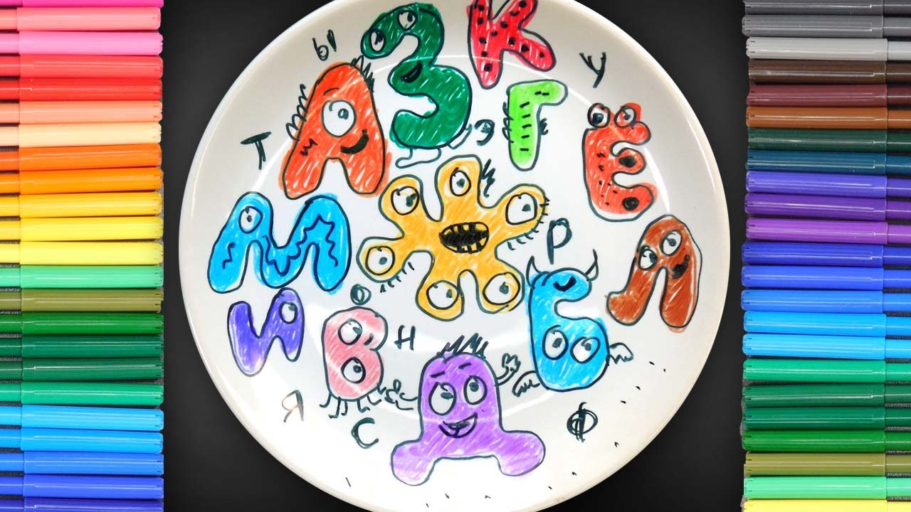Фломастерами на тарелке