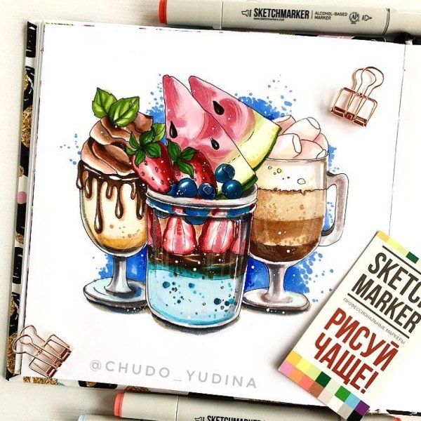 ![Скетчи маркерами сладости]()