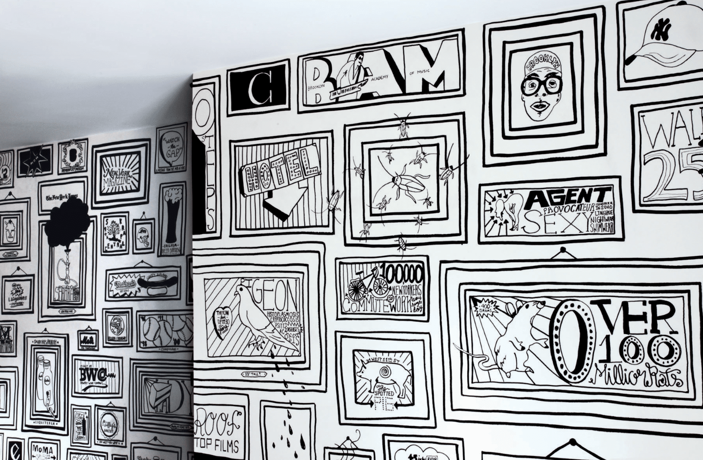 ![Картины маркером на стене]()