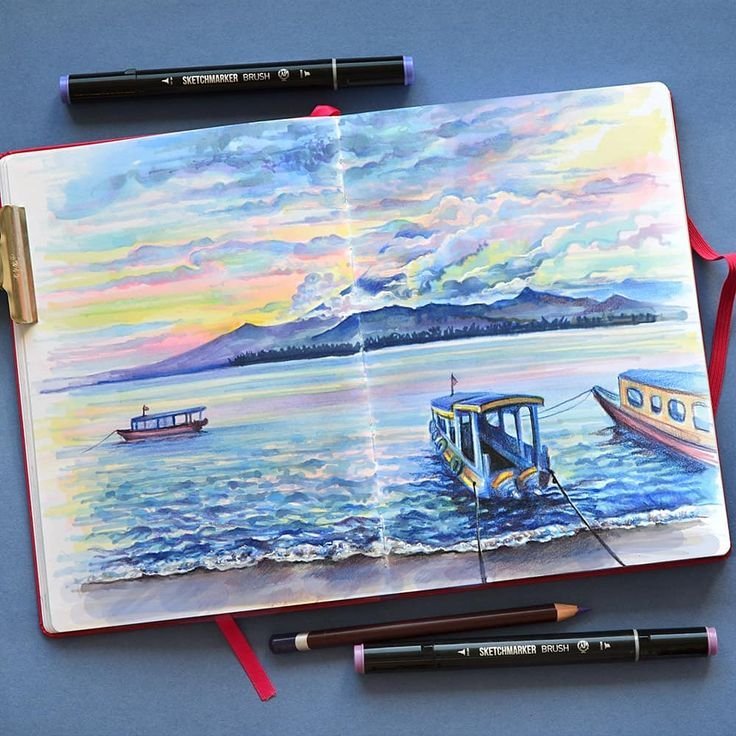 ![Пейзажи маркерами для скетчинга лёгкие]()