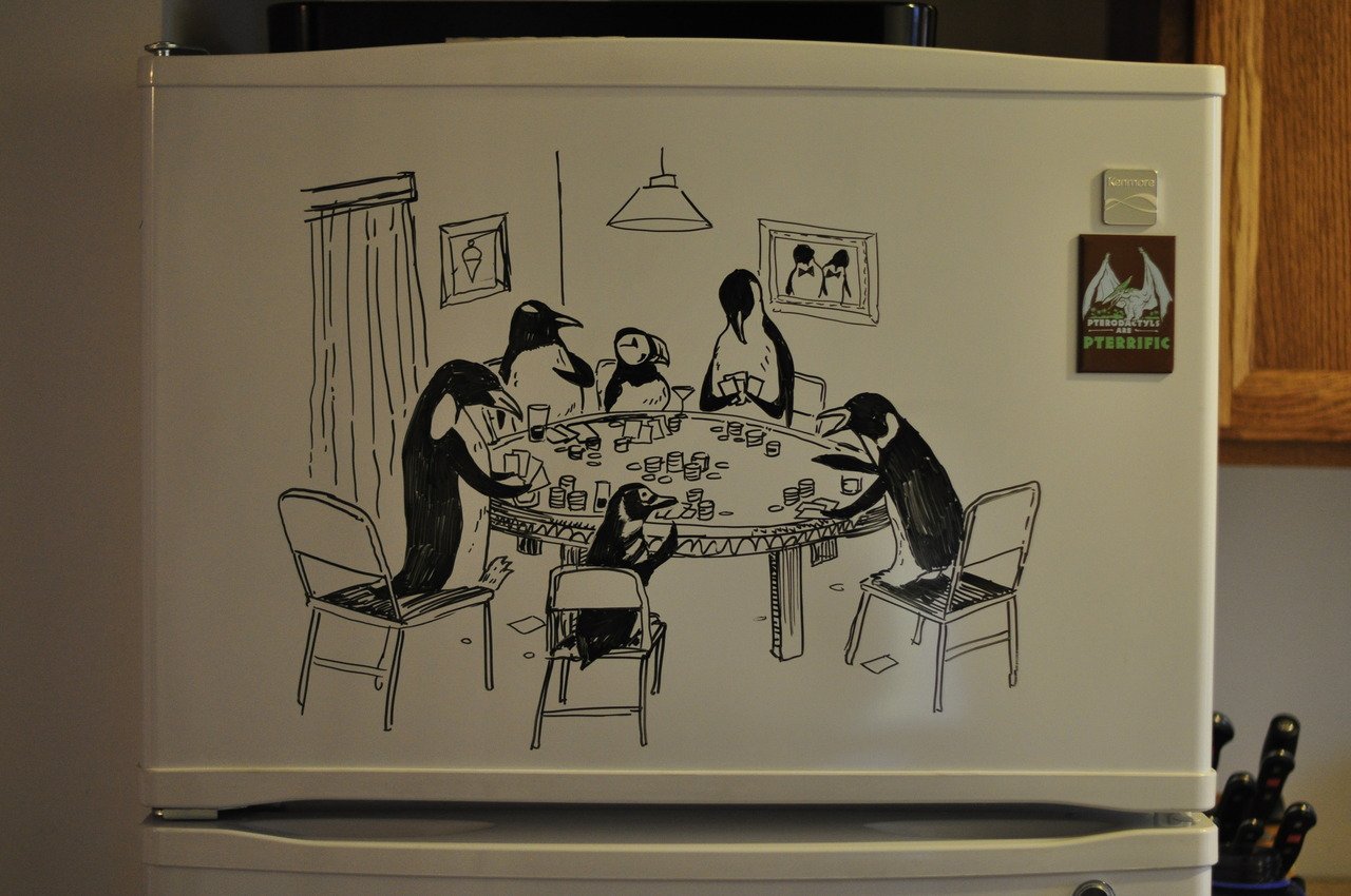 ![Рисунки на холодильнике маркером]()