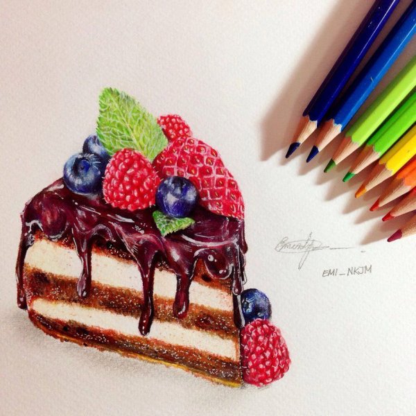![Тортик цветными карандашами]()