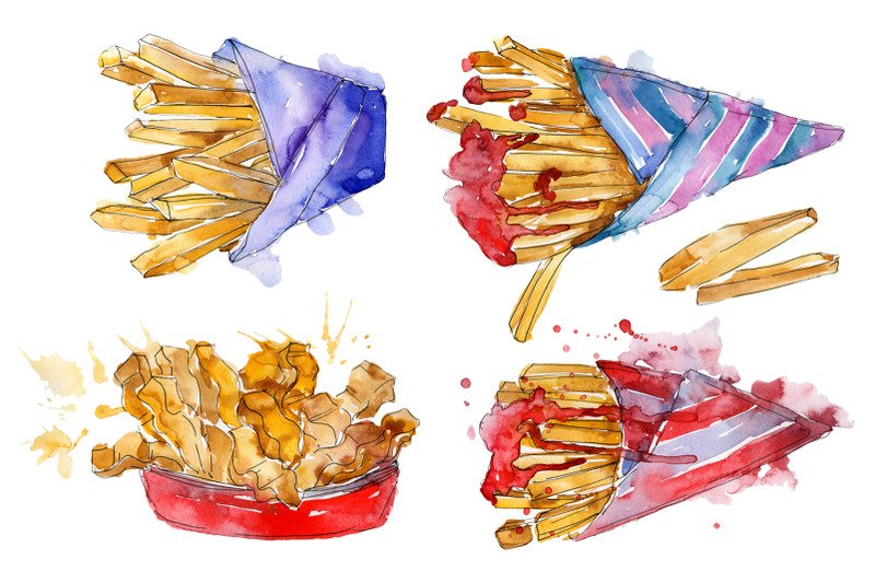 ![Картофель фри акварель]()