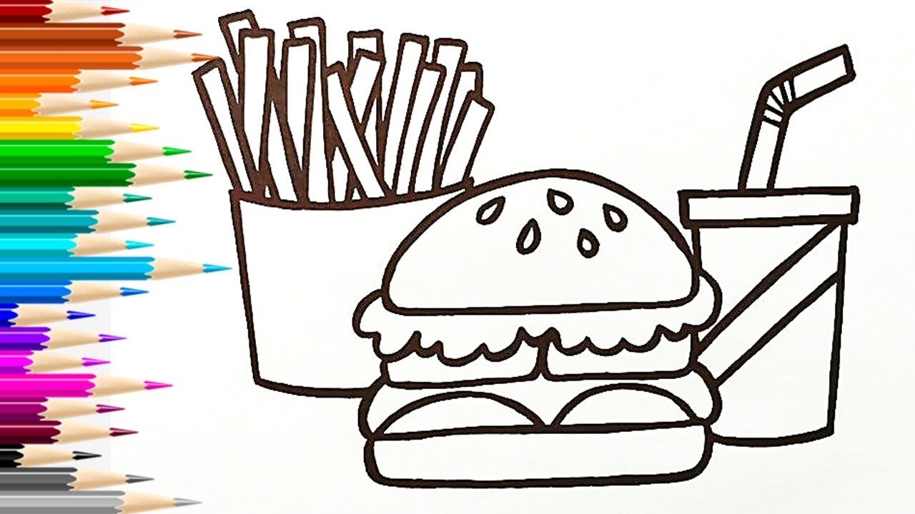 ![Раскраски картошка фри и гамбургер]()