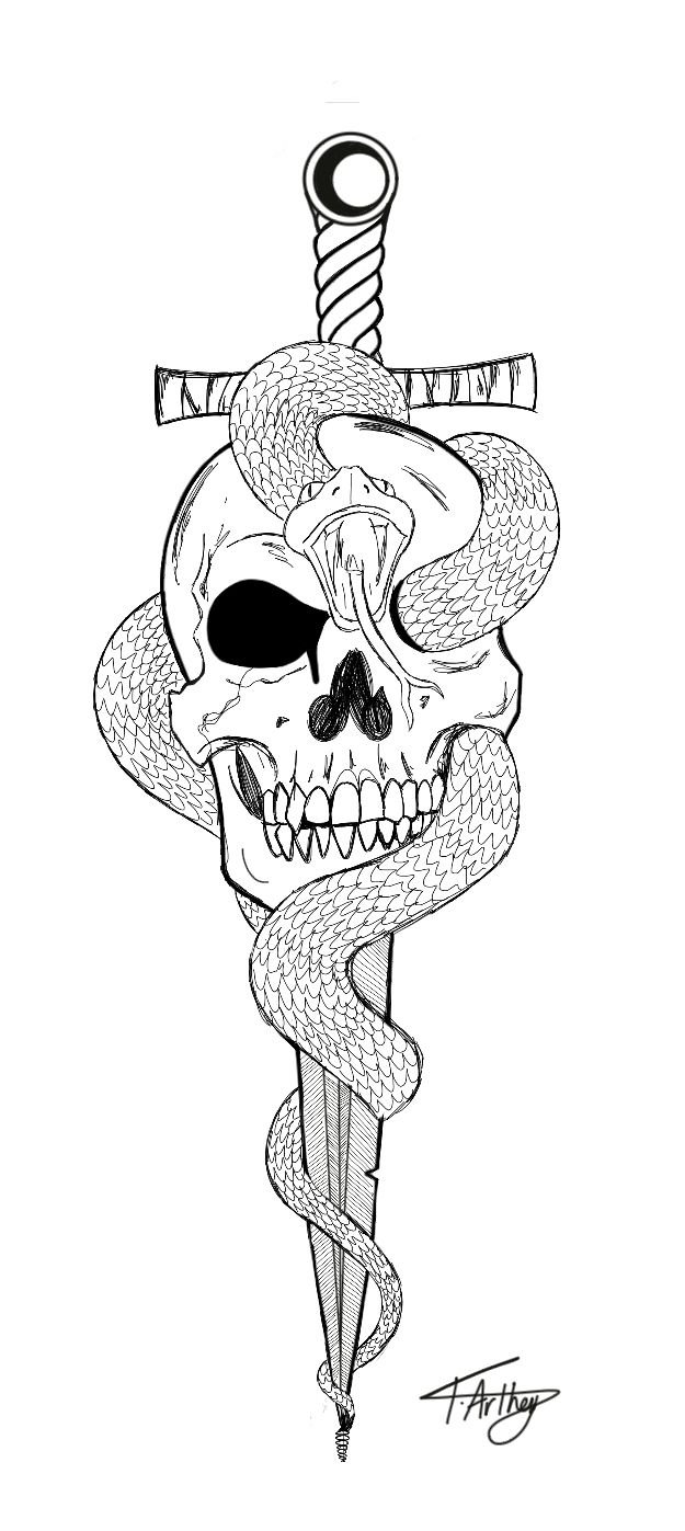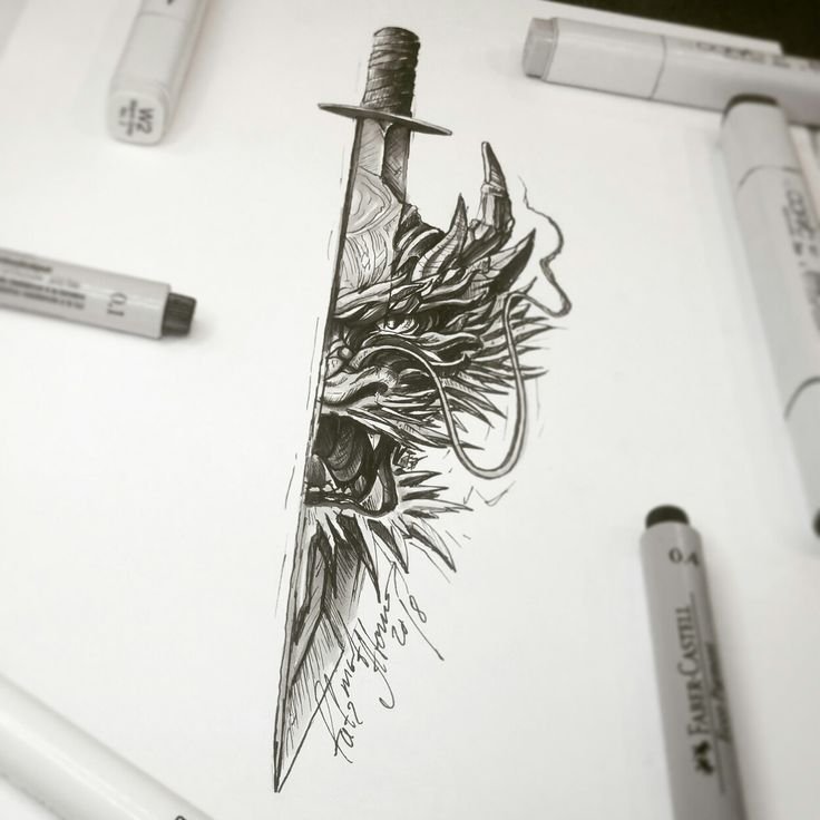 Дракон с кинжалом тату эскиз