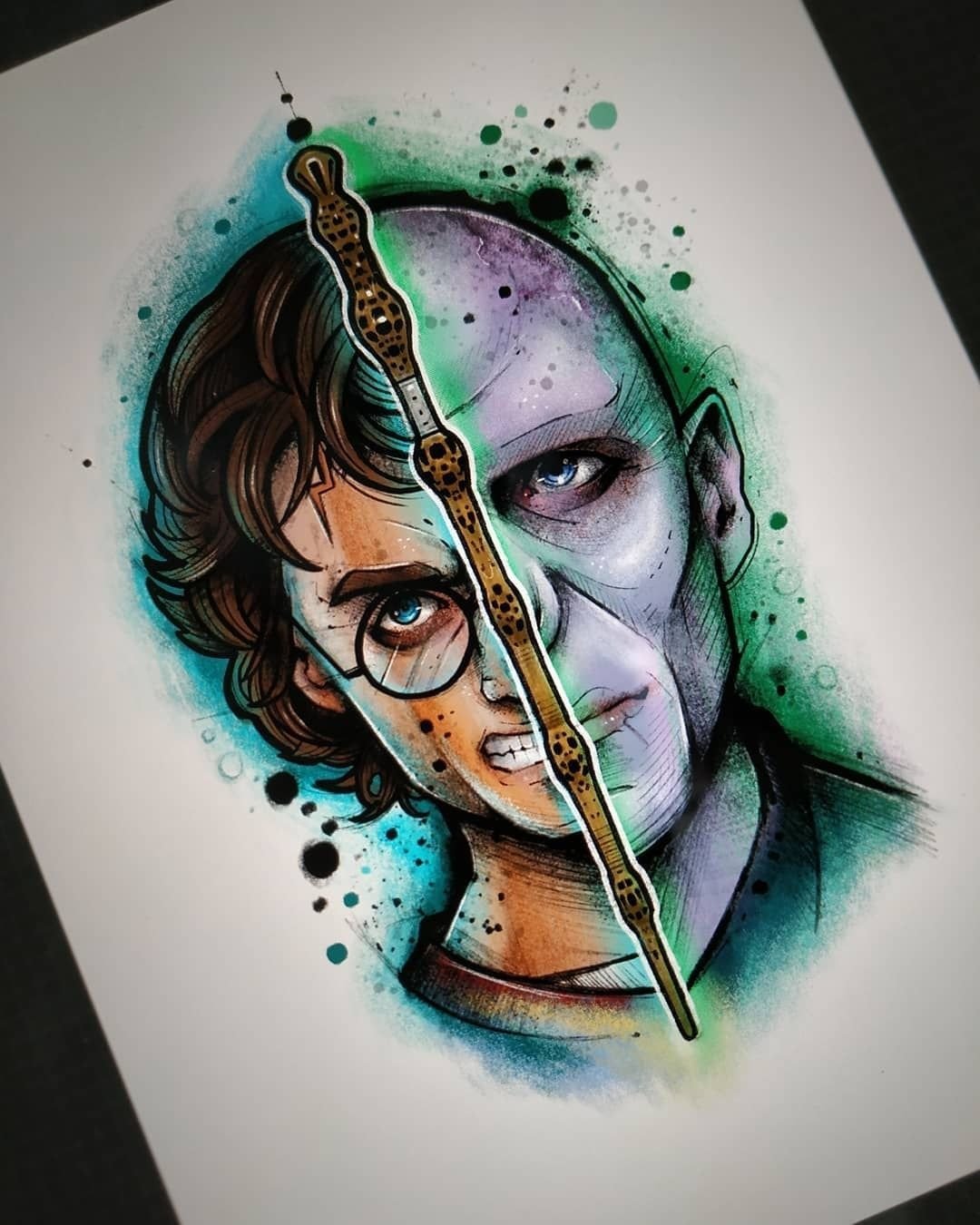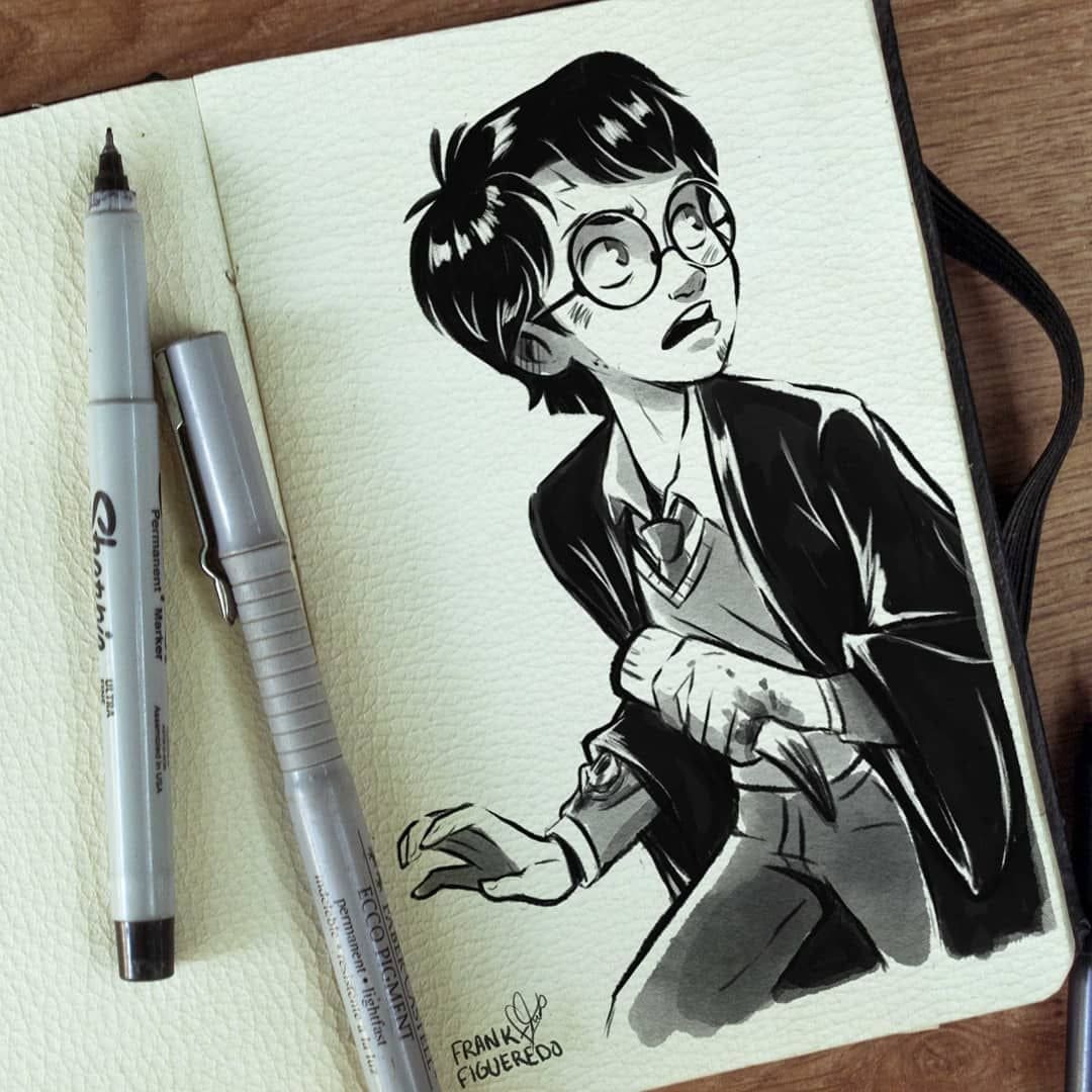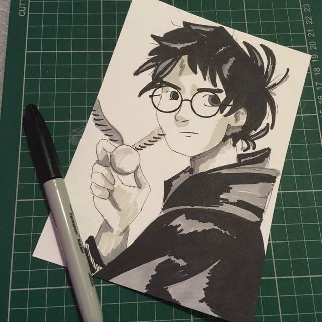 ![Рисунки в скетчбук маркерами Гарри Поттер]()