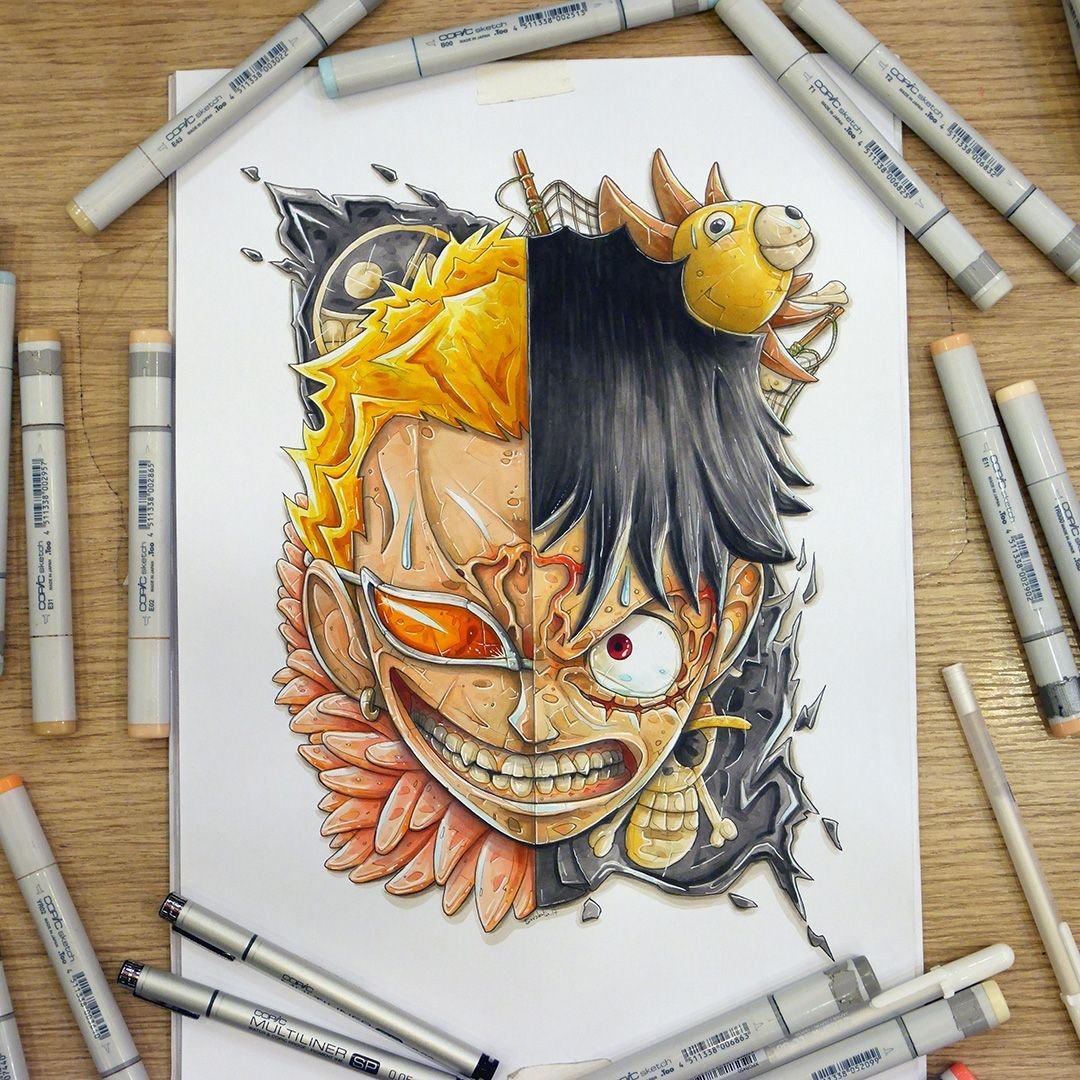 ![Ван Пис рисунки маркерами]()