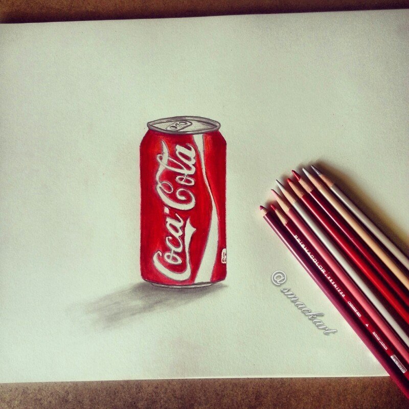 ![Банка колы карандашом]()