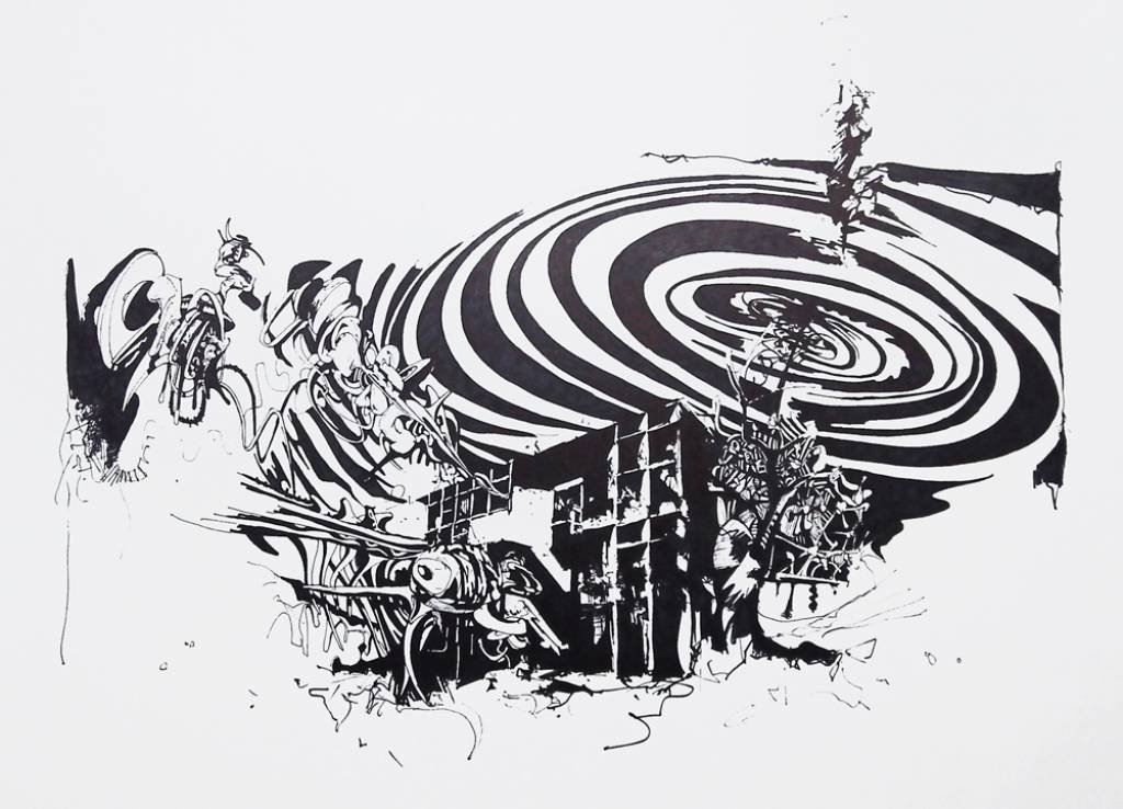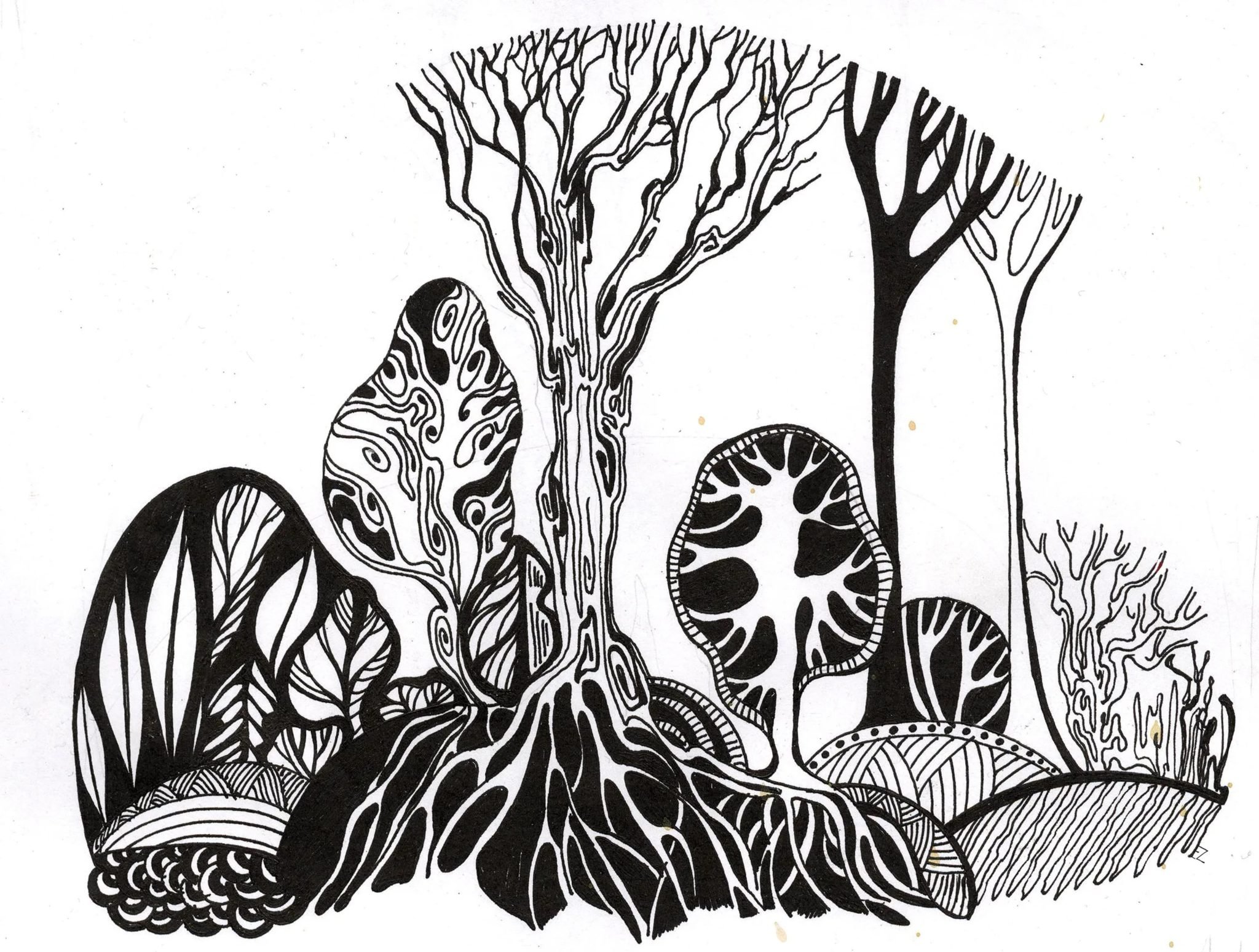 Пейзаж черной ручкой