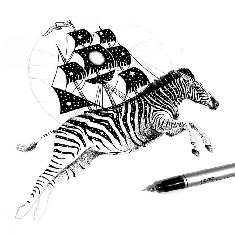 Картины черной ручкой