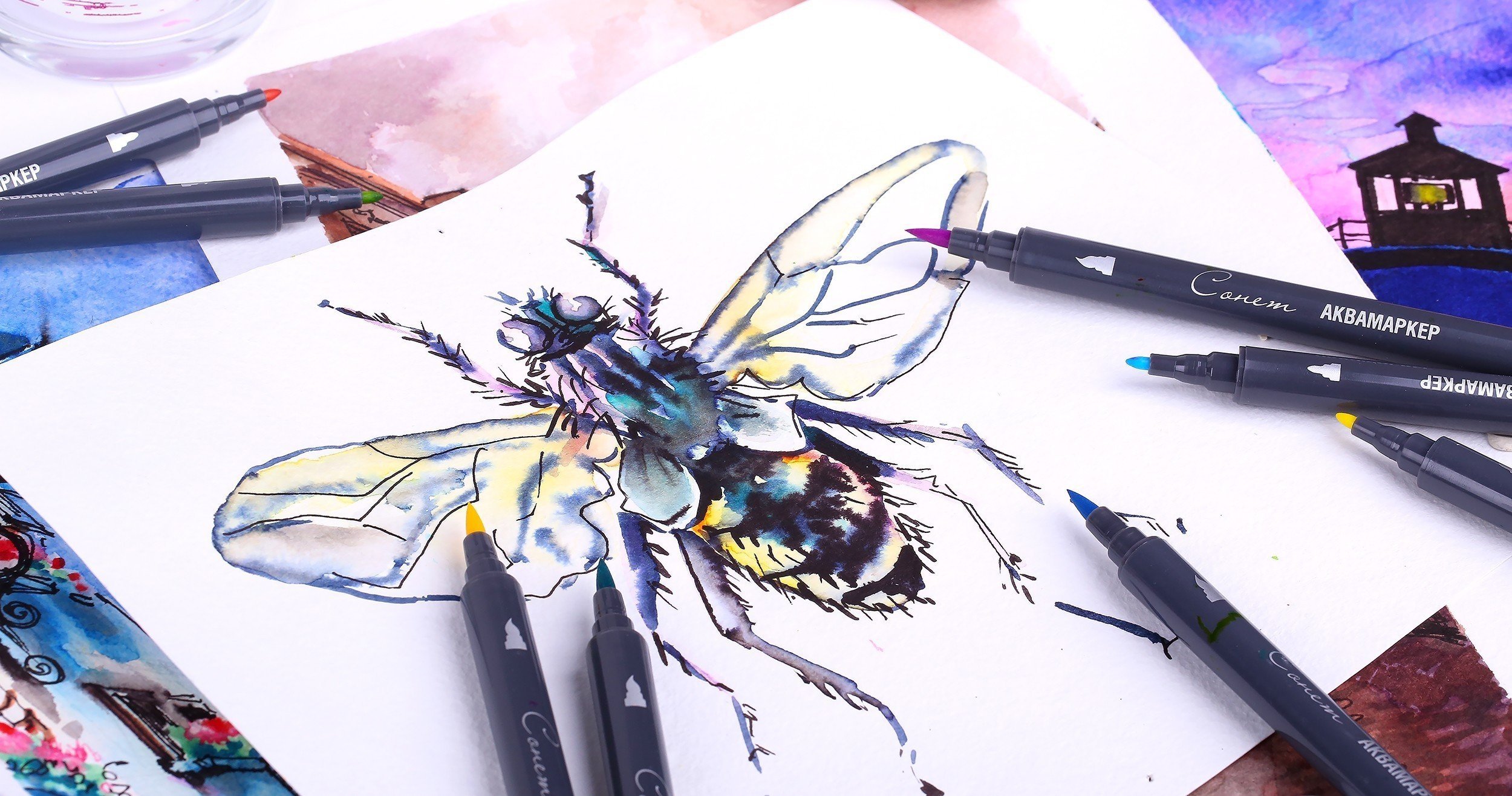 Акварель и фломастеры