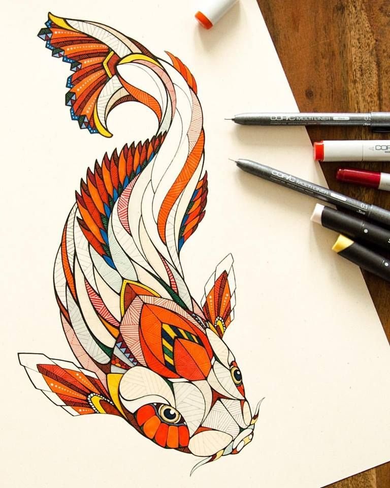 ![Японские рыбы маркерами]()