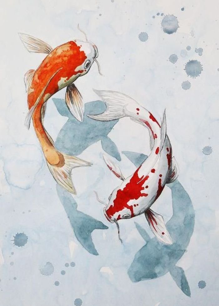 ![Рыбы кои акварель]()