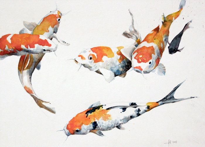 ![Японские рыбки акварель]()