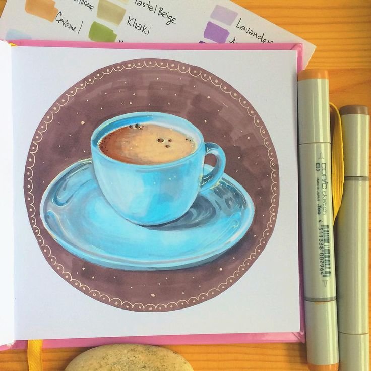![Рисунки для скетчбука маркерами кофе]()