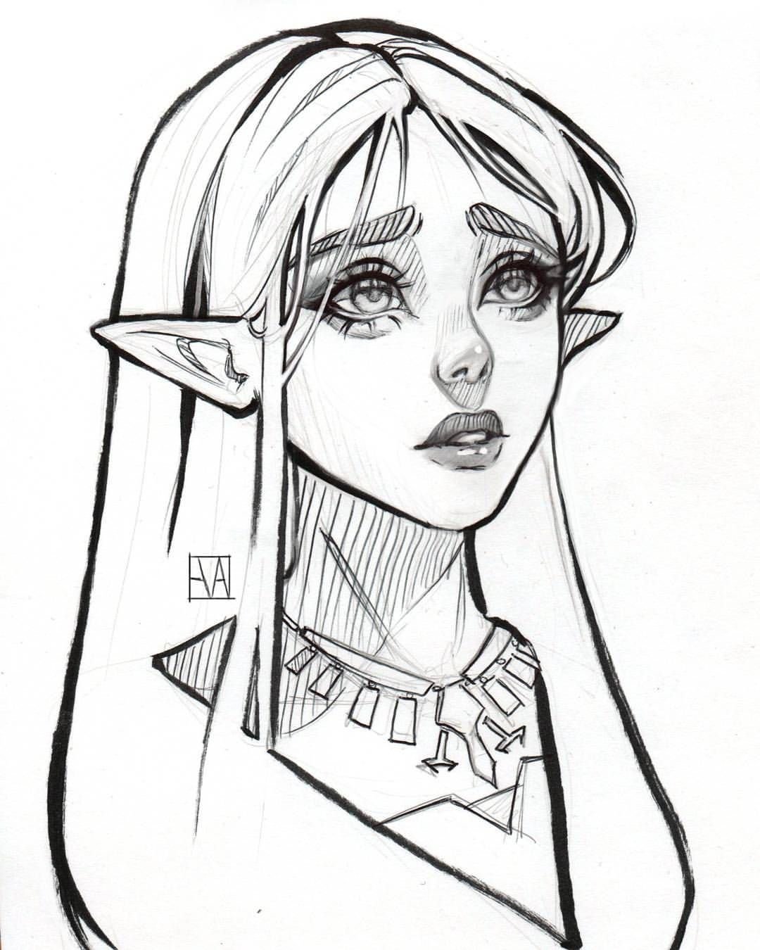 Скетч девушка Эльф