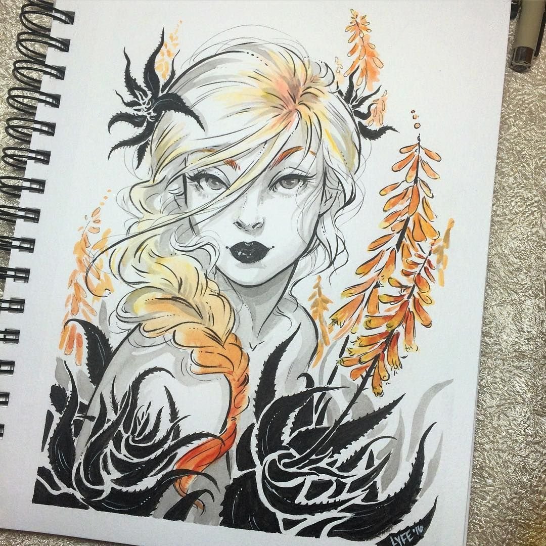 Арты акварелью и черной ручкой
