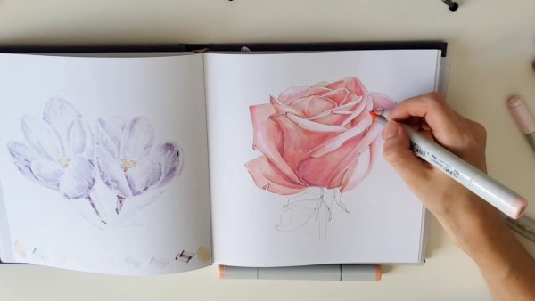 Роза маркерами для скетчинга для начинающих