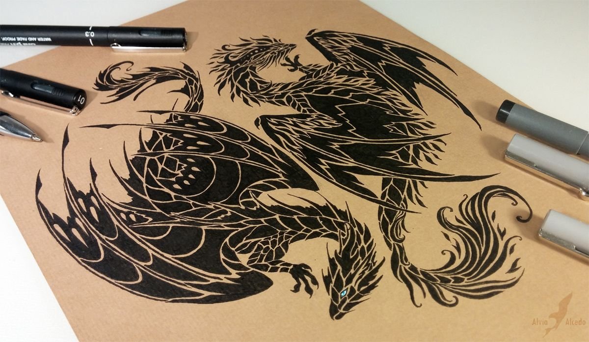 Этот захватывающий рисунок, выполненный черным маркером, непременно привлечет внимание любителей фэнтези и мифологии. Мастерская работа демонстрирует великолепные детали и острый контур, позволяющий каждой линии ярко выделиться на белом фоне. Дракон, изображенный на рисунке, искажает своего врага, открывая свои массивные челюсти и расправляя крылья. Его глаза испускают жгучий огонь, а кожа покрыта чешуей, что придает образу еще больше реализма. Этот драматический и потрясающий рисунок станет отличным украшением для любого помещения и прекрасно подойдет для фанатов фэнтези или просто ценителей уникального искусства.