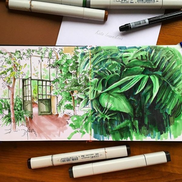 ![Рисунки маркерами для скетчинга растения (48 фото)]()