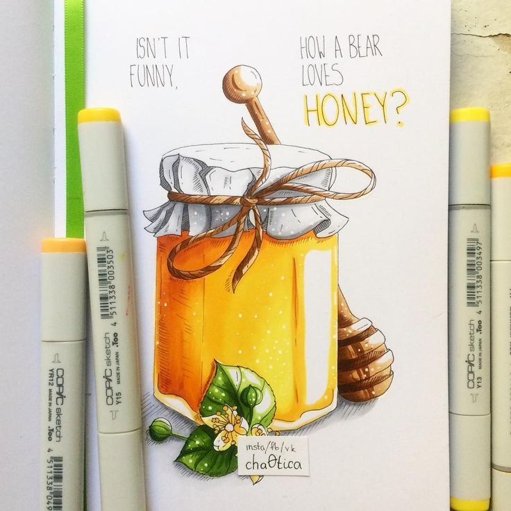 Представьте себе яркий и привлекательный рисунок банка, заполненного аппетитным медом. Этот картина выполнена с использованием маркеров, которые придают ей особый шарм и выразительность. В каждой детали можно увидеть тончайшие переходы от светлых оттенков до глубоких, насыщенных цветов, что создает эффект объемности и реалистичности. Благодаря мастерству художника, банк с медом становится почти осязаемым, словно вы можете почувствовать его сладость и нежность. Этот рисунок отлично подойдет для декорации кухни или столовой, добавляя им уютности и обаяния. Картина с банком меда воплощает приятные ассоциации с домашним уютом и натуральностью, идеально подходя для любителей красивых и гармоничных интерьеров.