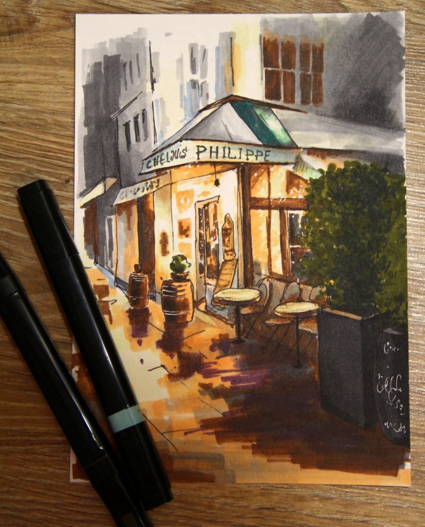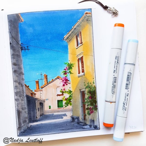 Пейзаж маркерами для скетчинга