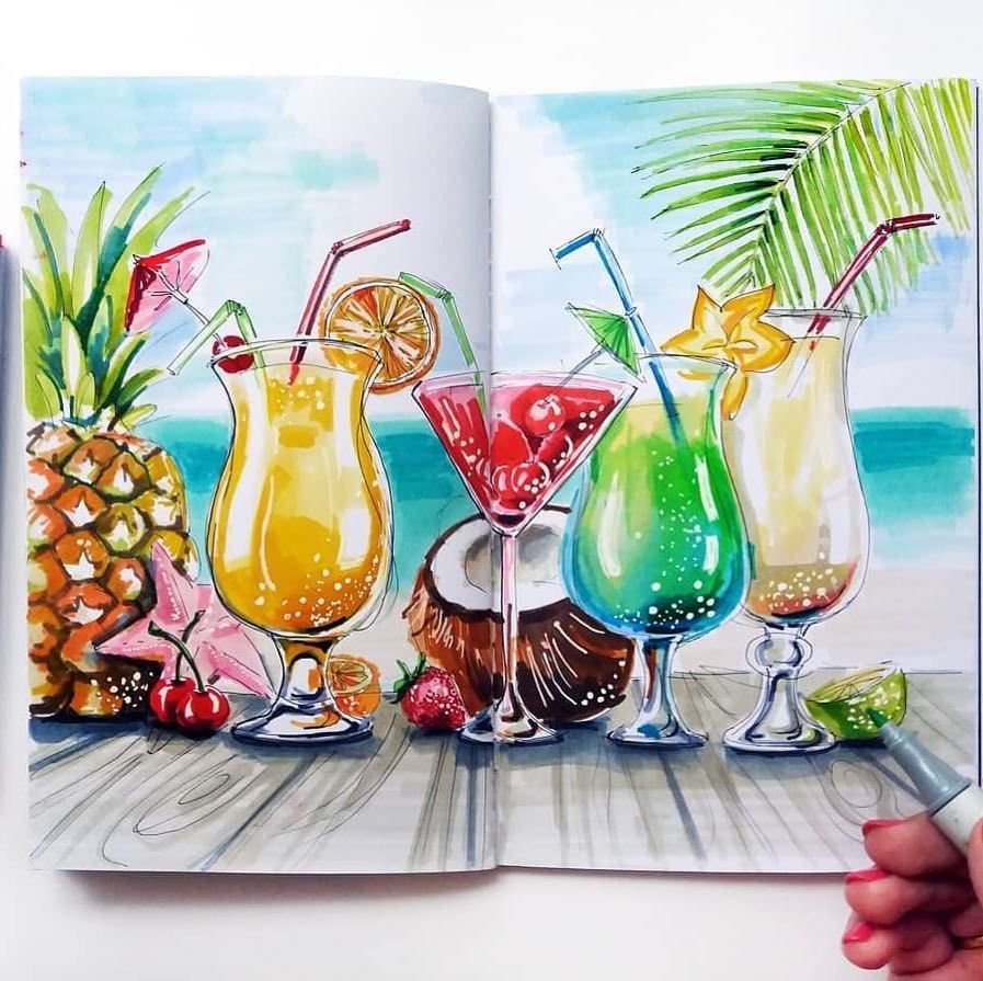 Коктейль акварелью скетчинг