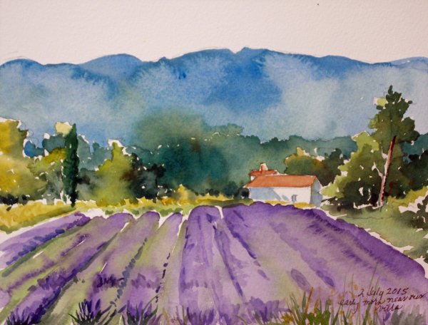 Лавандовое поле акварелью
