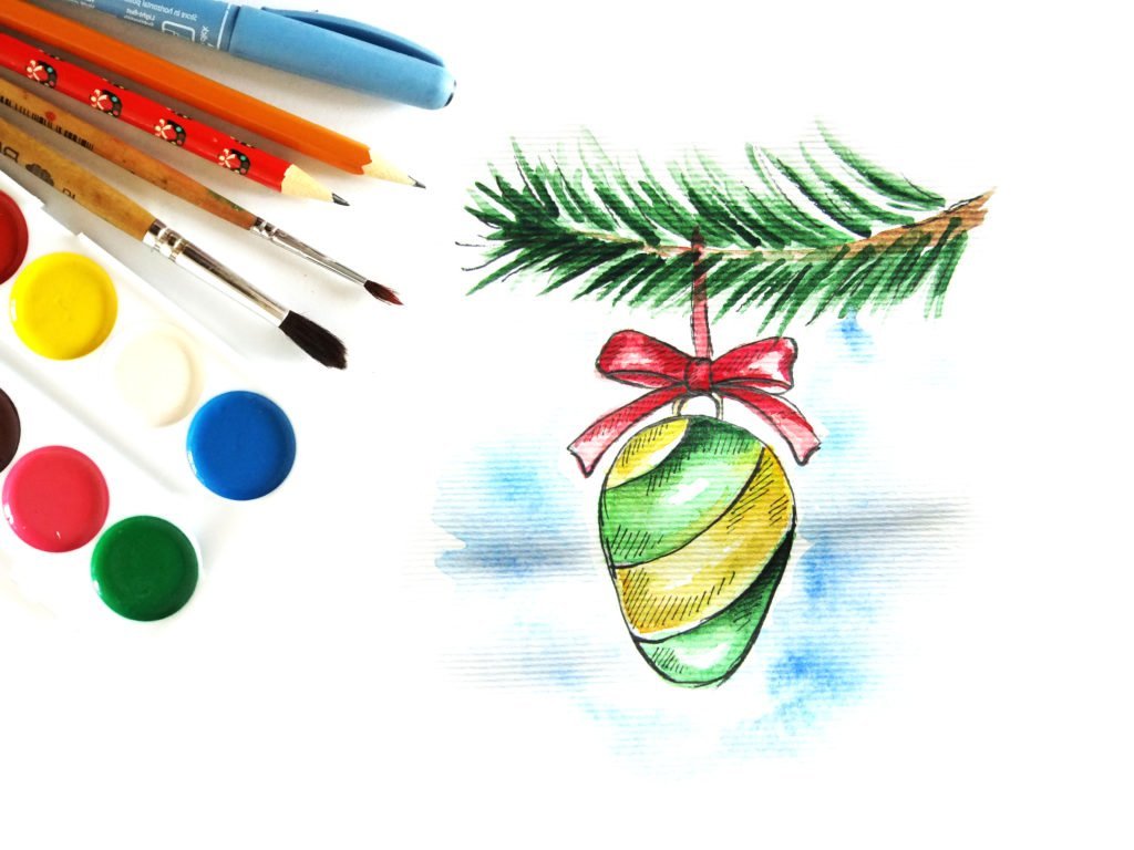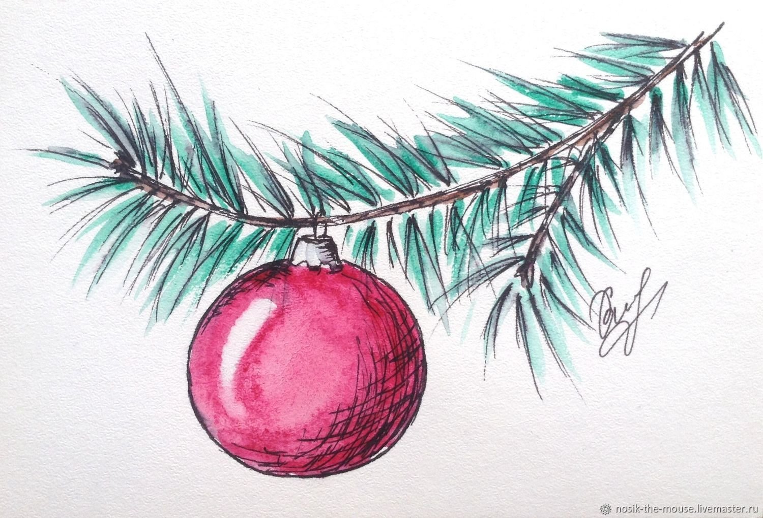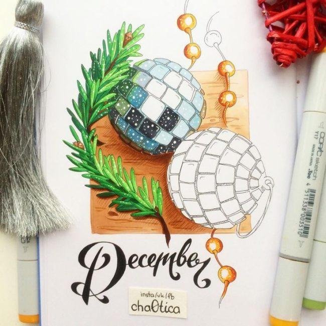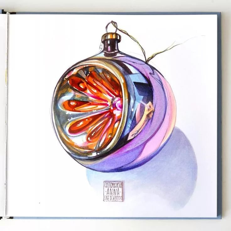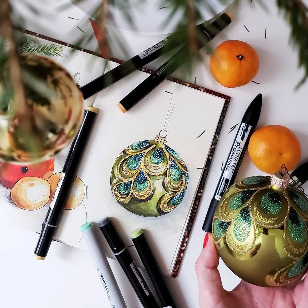Скетчинг елочные игрушки
