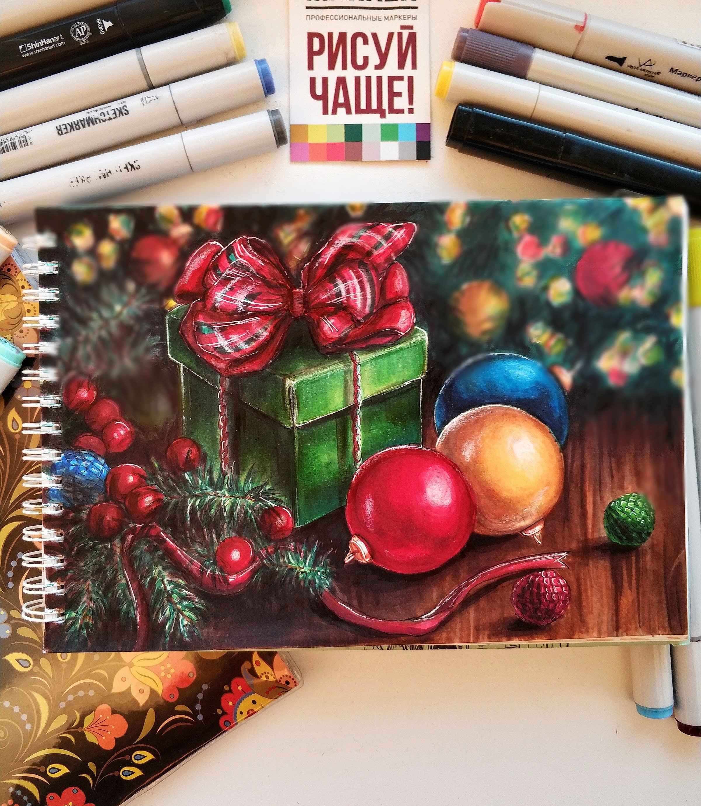 Новогодние скетчи маркерами