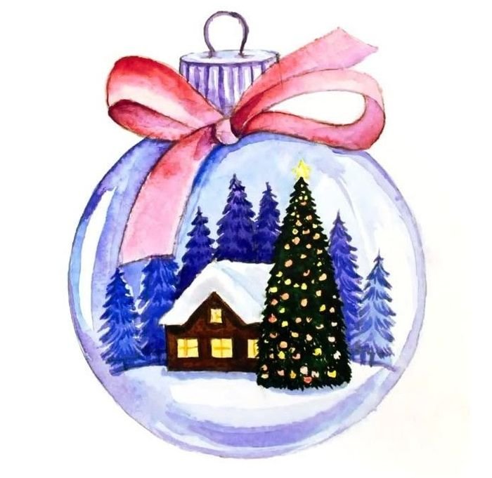 Елочный шар акварелью
