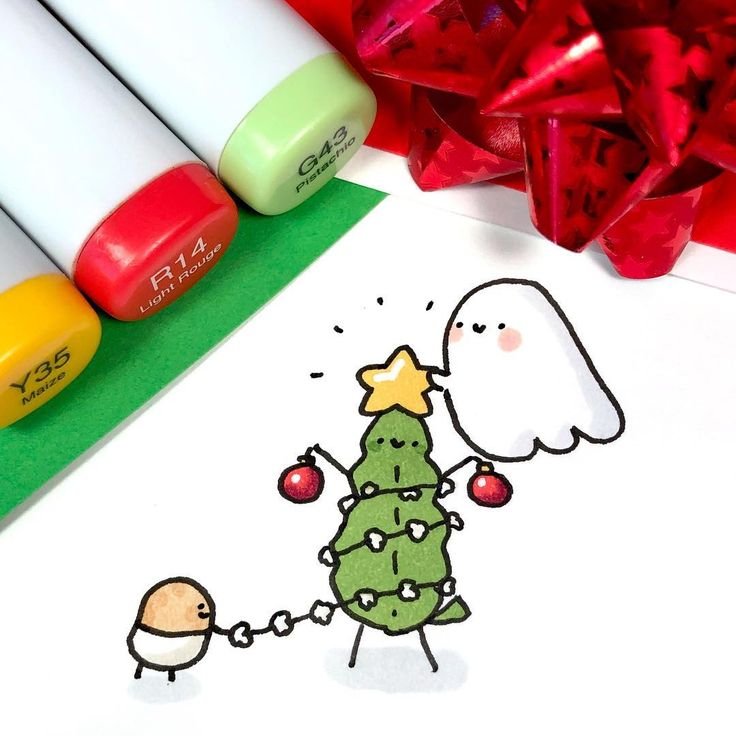 Новогодние скетчи маркерами для начинающих легкие