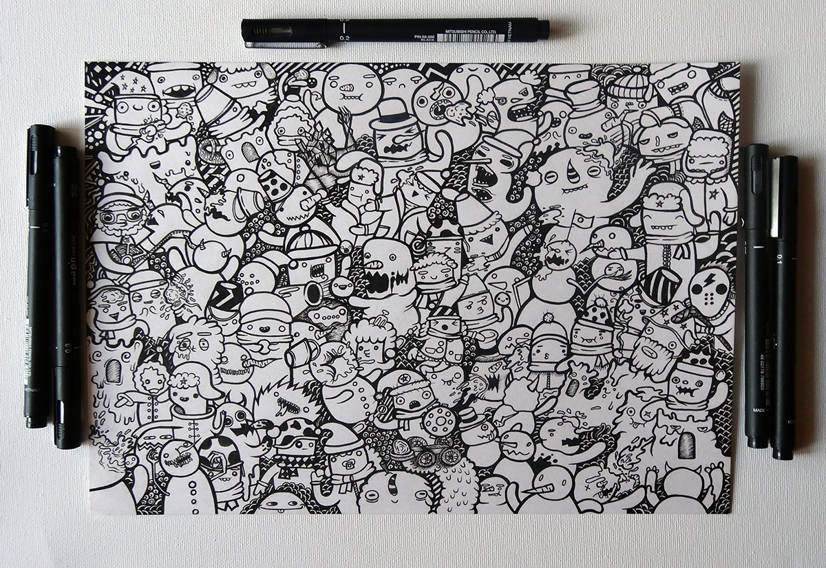Много маленьких рисунков маркерами