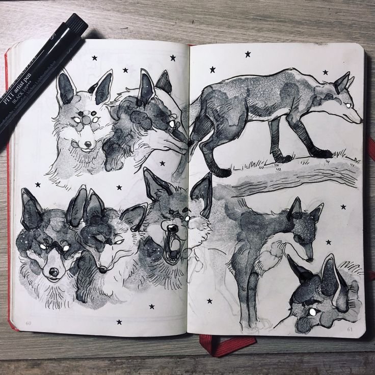 ![Животные в скетчбуке]()