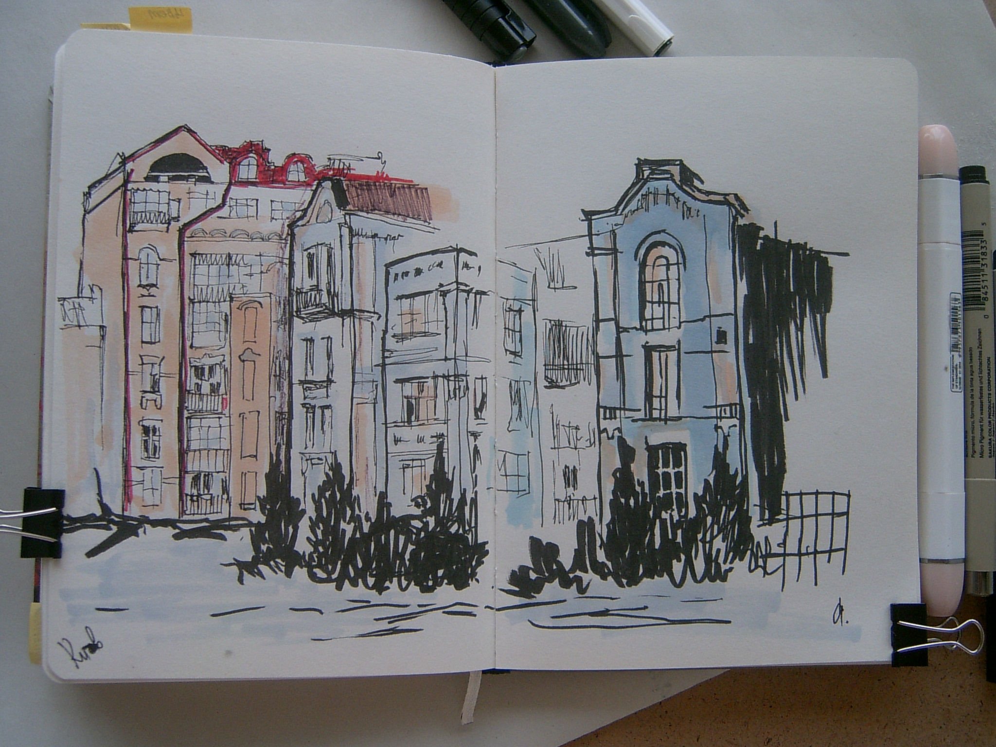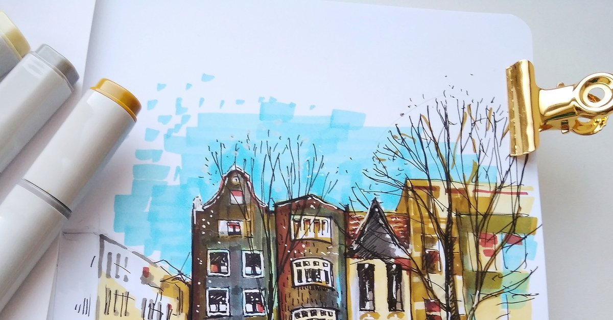 Скетч города маркерами